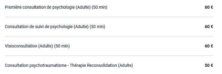 Détails de la grille tarifaire (disponible sur Doctolib)